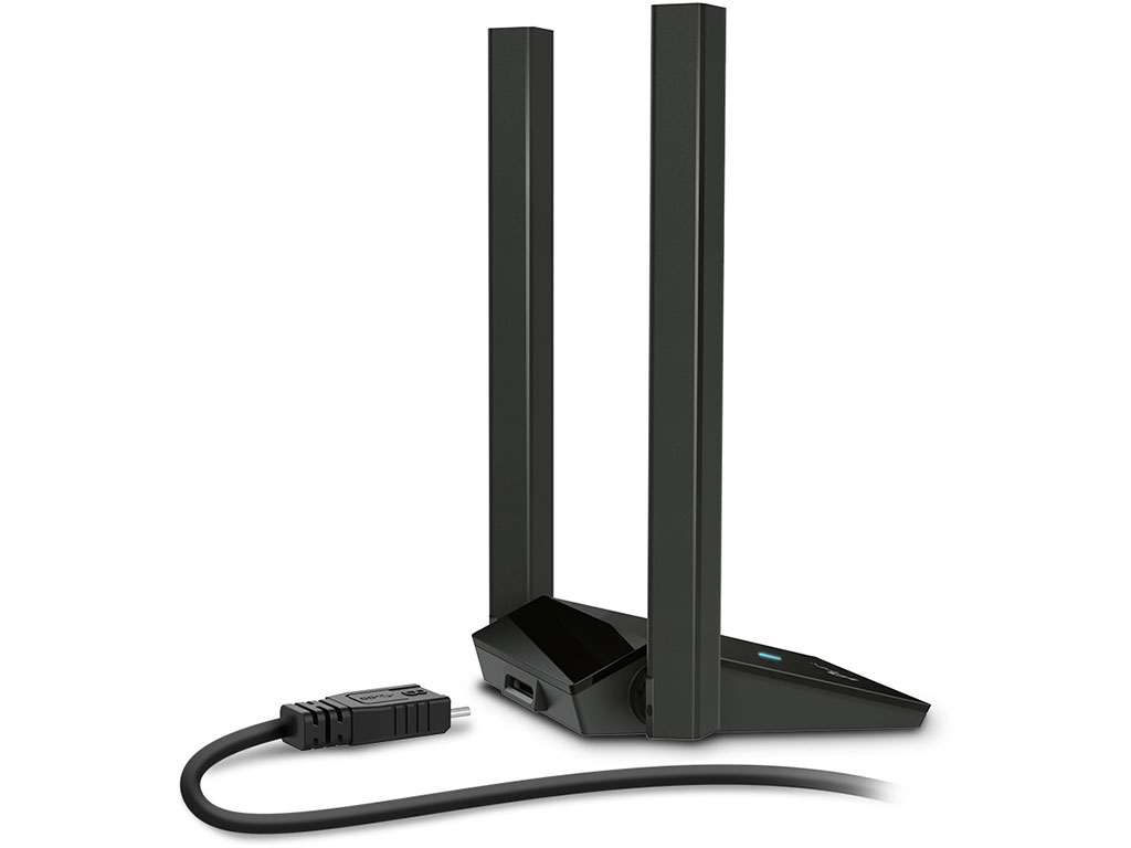 Encontrá el mejor lugar para la recepción de red con el diseño ideal para escritorio del TX20U Plus y su cable USB de 1 metro.