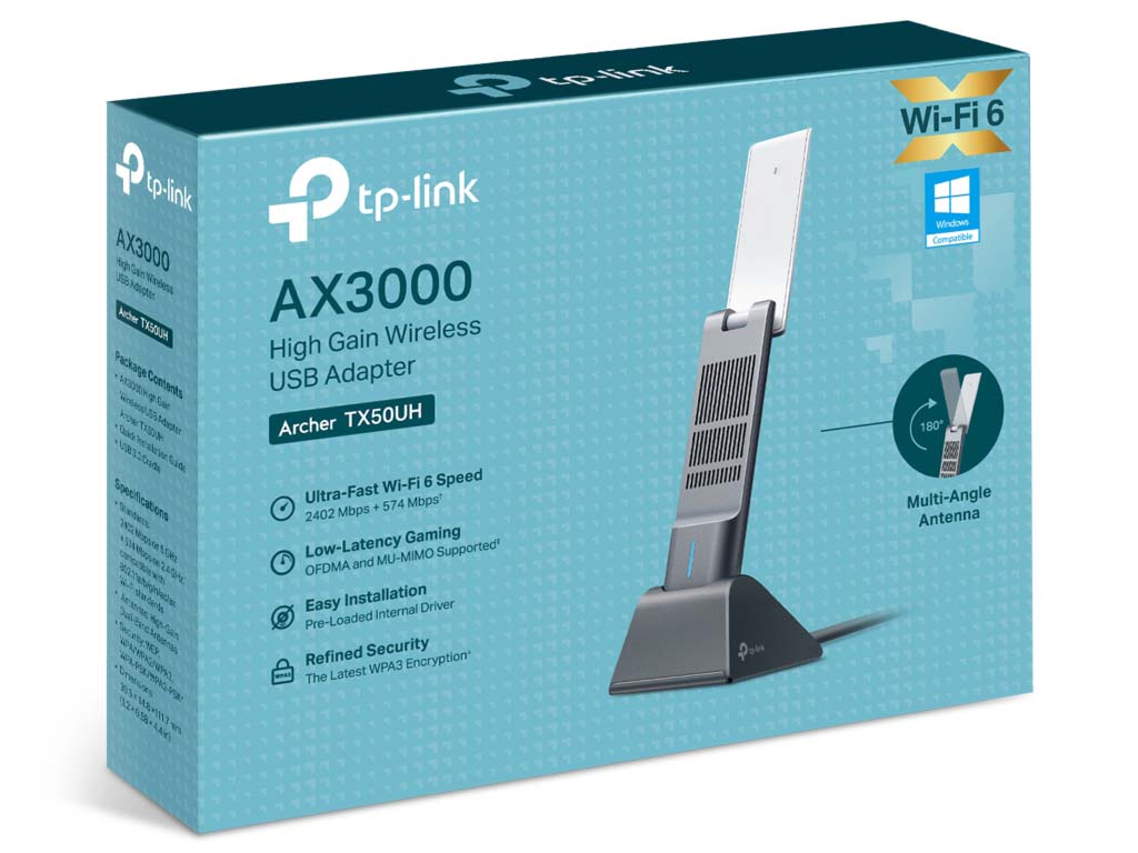 Un cable USB 3.0 de 1,2 metros te facilita encontrar un lugar para el Archer TX50UH en tu espacio de trabajo, y el adaptador se puede conectar y retirar de tu computadora fácilmente cuando lo necesités.