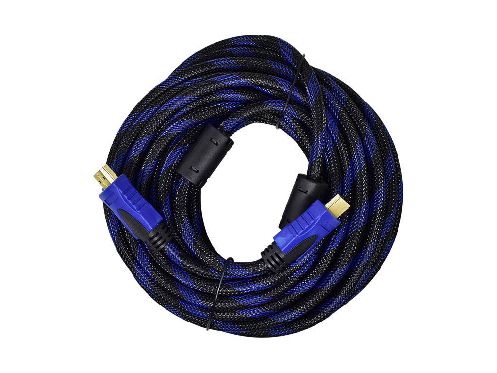 En cuanto a materiales, viene bien armado: malla externa de tela para mayor resistencia, blindaje interno de aluminio para ayudar a reducir interferencias, y ferrites (filtros) en ambos extremos para mejorar la estabilidad de la transmisión. Además, suma conectores dorados 24K y un diseño robusto, y lo podés elegir en varias longitudes según tu instalación, desde tramos cortos hasta tiradas largas.
