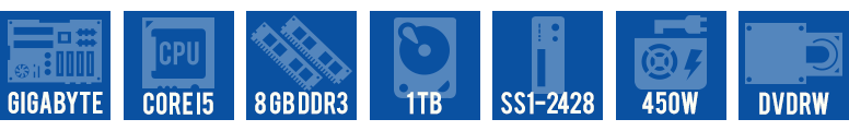 Modelo: CS Slim Core i5 Pro 2428 Motherboard: Gigabyte GA-B85M-D2V Socket 1150 Procesador: Intel® Core™ i5-4440 3,3GHz 6MB Cache Socket 1150 Disco Rígido: Western Digital Blue 1TB SATA3 7200 RPM 64 MB Buffer (WD10EZEX) Memoria Ram: Kingston 8GB DDR3 1600 MHz - 2 x socket DIMM DDR3 1.5V con capacidad para 16 GB de memoria de sistema - Arquitectura de memoria Dual Channel - Soporta módulos de memoria DDR3 1600/1333 MHz - Soporte para módulos de memoria no ECC - Soporte para módulos de memoria Extreme Memory Profile (XMP) DVD: Regrabadora de DVDs y CDs LG Dual Layer Video: Intel® HD Graphics 4600 - 1 x puerto D-Sub, que soporta una resolución máxima de 1920x1200 - 1 x puerto DVI-D, que soporta una resolución máxima de 1920x1200 - Máximo de memoria compartida: 1 GB. Sonido: Realtek® ALC887 codec - 2/4/5.1/7.1 Red: Chip Realtek® GbE LAN (10/100/1000 Mbit) Gabinete: Sentey Slim SS1-2428 STYX con fuente 450W USB 3.0 En el frente Expansión: - 1 x PCI Express x16, funcionando a x16 (PCIEX16) (La ranura PCI Express x16 cumple con el estándar PCI Express 3.0.) - 2 x PCI Express x1 (La ranura PCI Express x1 cumple con el estándar PCI Express 2.0.) Panel Trasero: - 1 x puerto para teclado PS/2 - 1 x puerto para mouse PS/2 - 1 x puerto D-Sub - 1 x puerto DVI-D - 2 x puertos USB 3.0/2.0 - 4 x puertos USB 2.0/1.1 - 1 x puerto RJ-45 - 3 x audio jacks (Line In, Line Out, Mic In) Garantía: 12 Meses Nota: Teclado, Mouse, Parlantes, Lector de tarjetas y monitor no están incluidos.