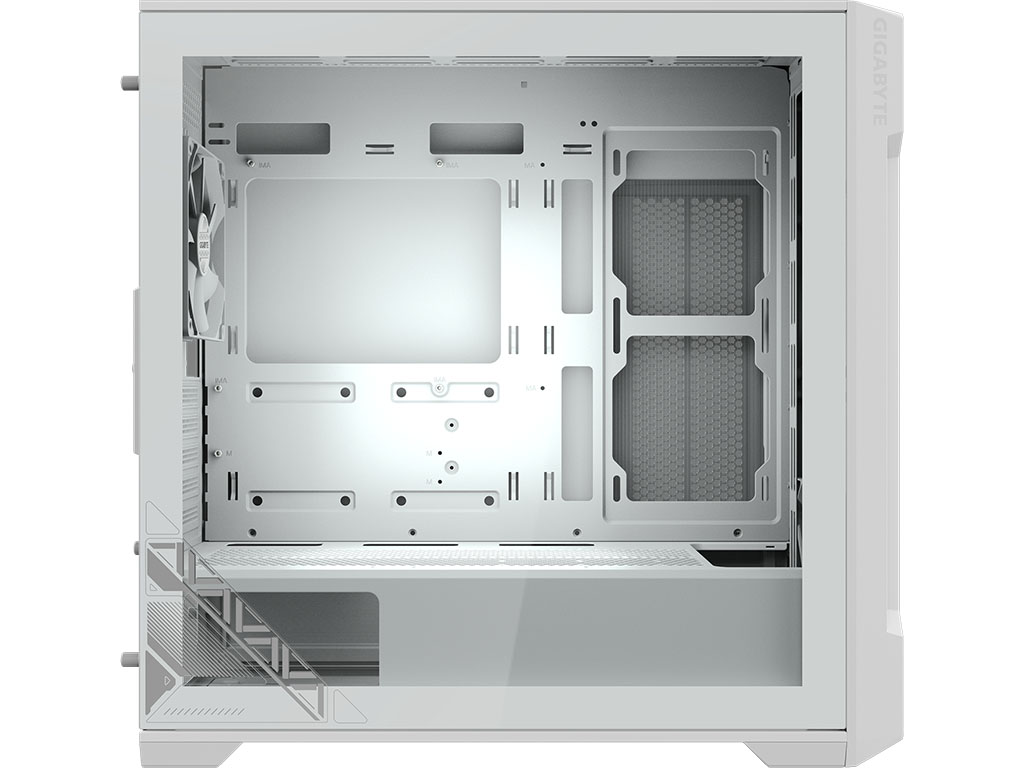 Los paneles frontal, superior y parcialmente el lateral derecho tienen un diseño ventilado, lo que proporciona un flujo de aire generoso para una refrigeración optimizada sin comprometer la estética premium.