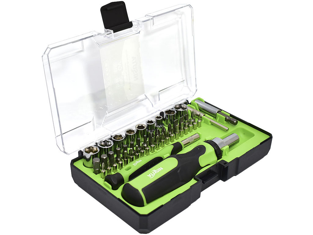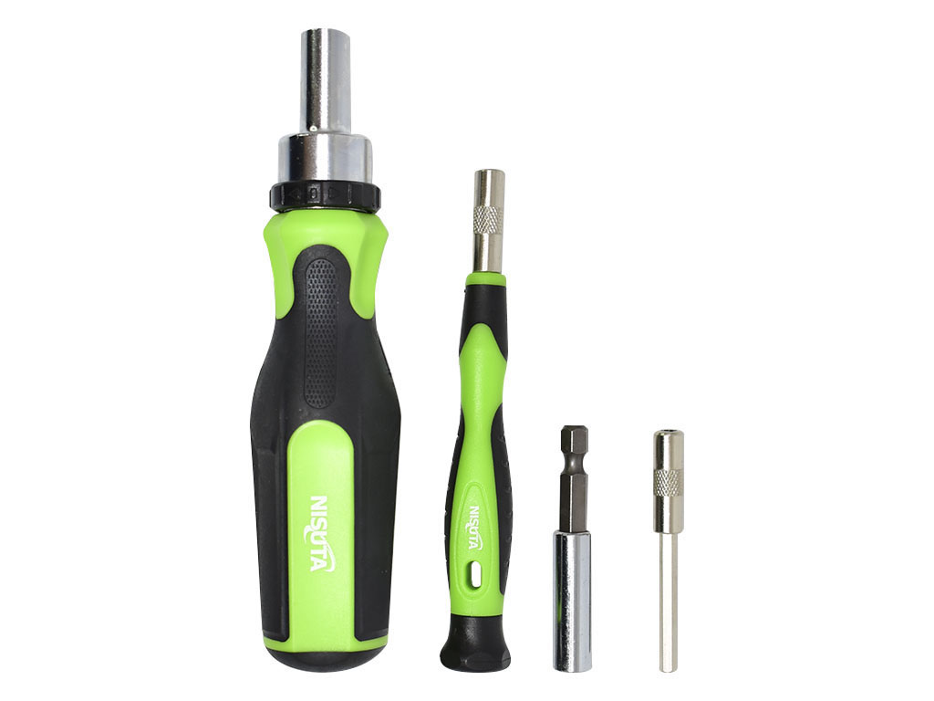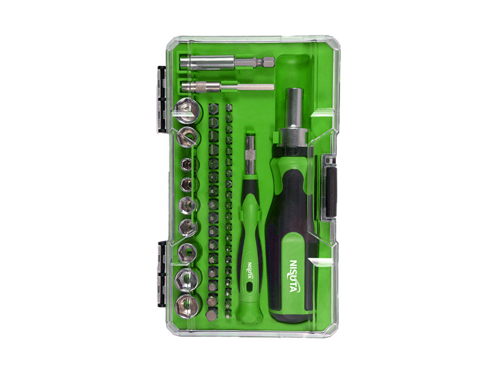 El juego de destornillador Nisuta NSKD49 es una opción completa y versátil para tareas de ajuste, armado y mantenimiento general, combinando herramientas para trabajos convencionales y de precisión en un solo kit. Su formato de 49 piezas incluye mango portapuntas con cricket, mango magnético de precisión, puntas intercambiables, tubos y adaptadores, ofreciendo una solución práctica para trabajar sobre distintos tipos de tornillos y tuercas con buena comodidad.