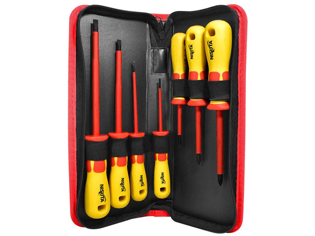 El kit de destornilladores Nisuta NSK9612 es una opción práctica para trabajos eléctricos que requieren herramientas aisladas, cómodas y resistentes. Su formato de 7 piezas reúne destornilladores planos y Phillips con aislamiento de hasta 1000 V, ofreciendo una solución útil para tareas de instalación, ajuste y mantenimiento donde la seguridad y la comodidad de uso son importantes.