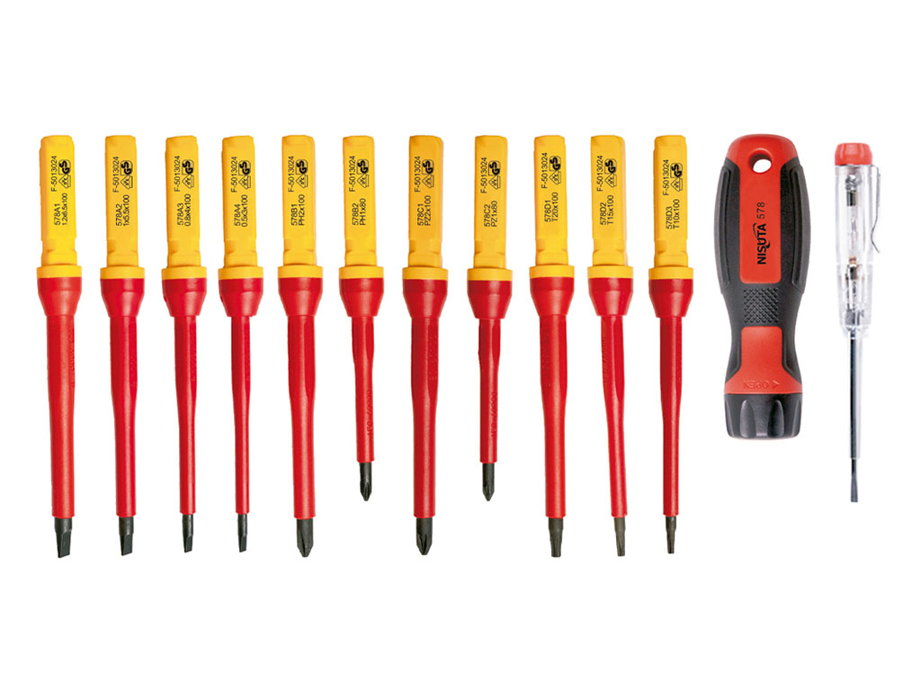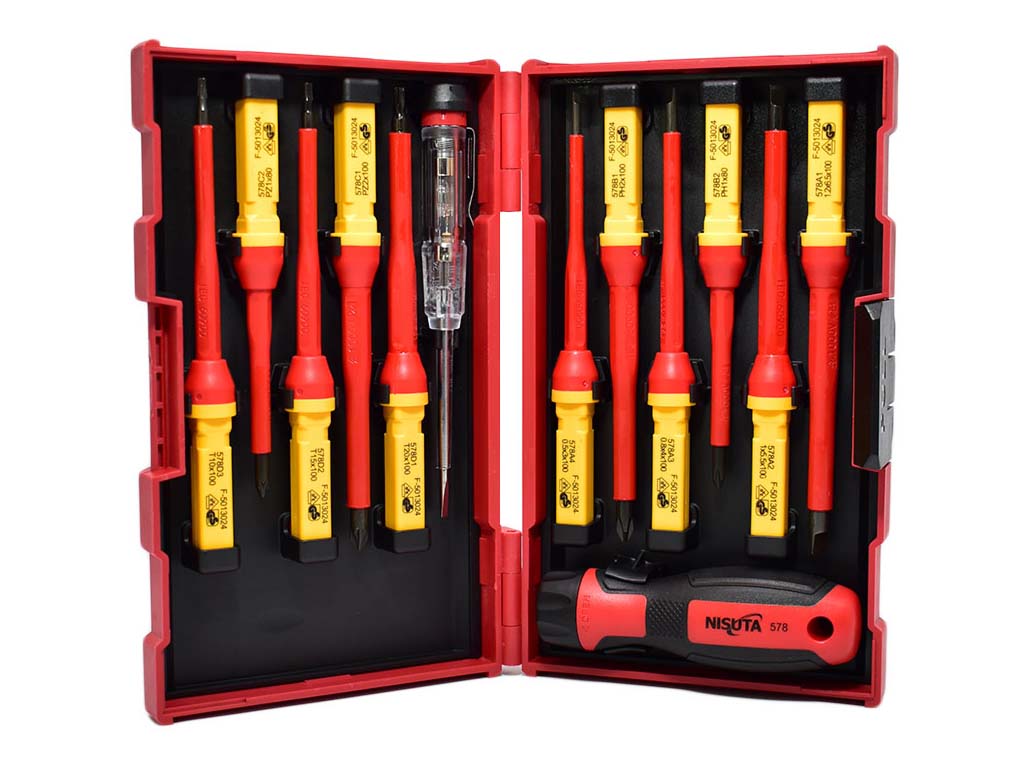El kit de destornillador Nisuta NSKVDE13 está pensado para trabajos eléctricos que requieren herramientas aisladas, prácticas y cómodas de usar. Su formato de 13 piezas combina un mango de destornillador intercambiable, buscapolos y distintos vástagos para tornillos planos, Phillips, Pozidriv y Torx, ofreciendo una solución versátil para tareas de instalación, ajuste y mantenimiento donde la seguridad y la precisión son importantes.