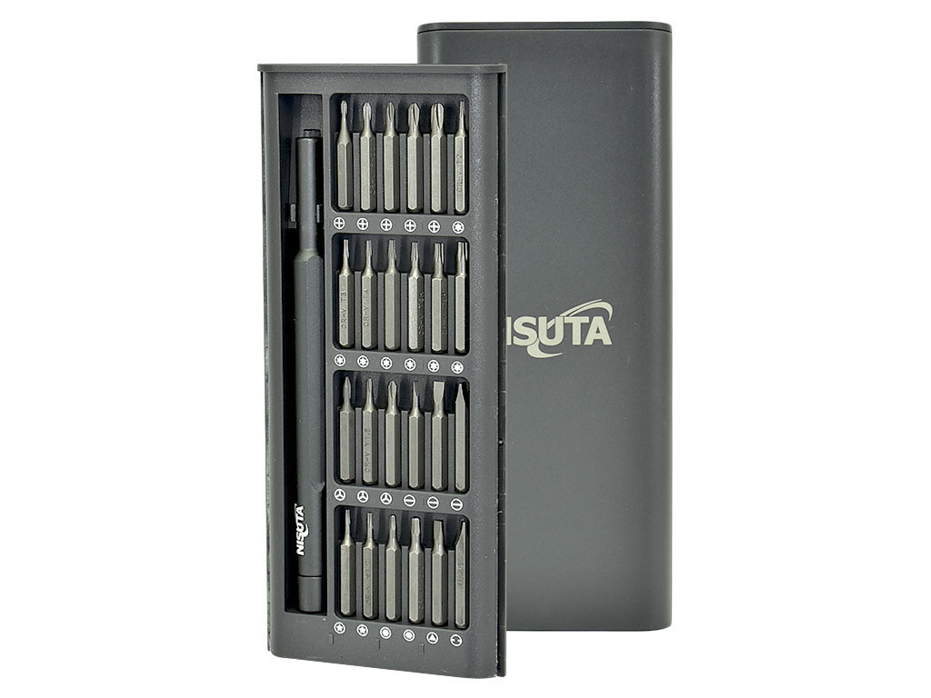 El kit de destornillador Nisuta NSKD25 es una opción versátil para tareas de reparación, ajuste y mantenimiento en dispositivos electrónicos, informática y trabajos de precisión. Su formato de 25 piezas combina un mango de aleación de aluminio con 24 puntas intercambiables, ofreciendo una solución práctica para trabajar con una amplia variedad de tornillos en celulares, equipos pequeños y otros dispositivos de uso frecuente.