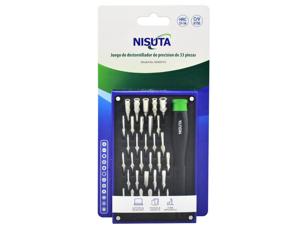 El kit de destornillador de precisión Nisuta NSKDP33 es una opción práctica y versátil para tareas de reparación, ajuste y mantenimiento en dispositivos electrónicos, celulares, consolas y otros equipos pequeños. Su formato de 33 piezas incluye un mango de precisión y una amplia variedad de puntas de 4 x 28 mm, ofreciendo una solución cómoda para trabajar con distintos tipos de tornillos en equipos que requieren mayor cuidado y exactitud.