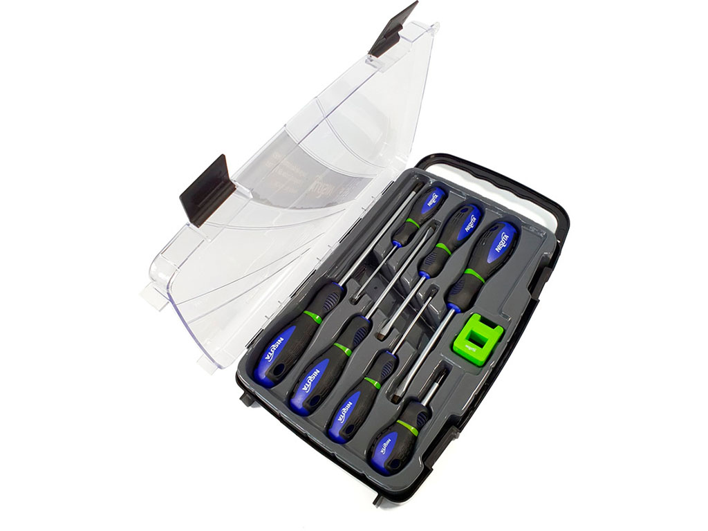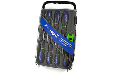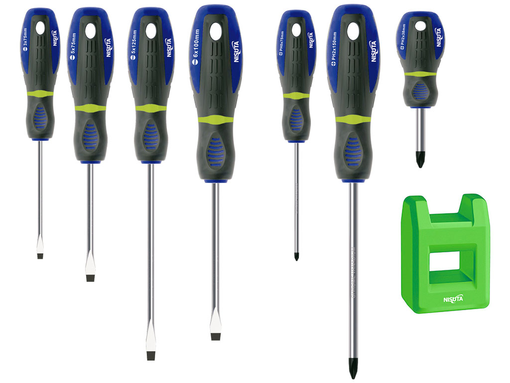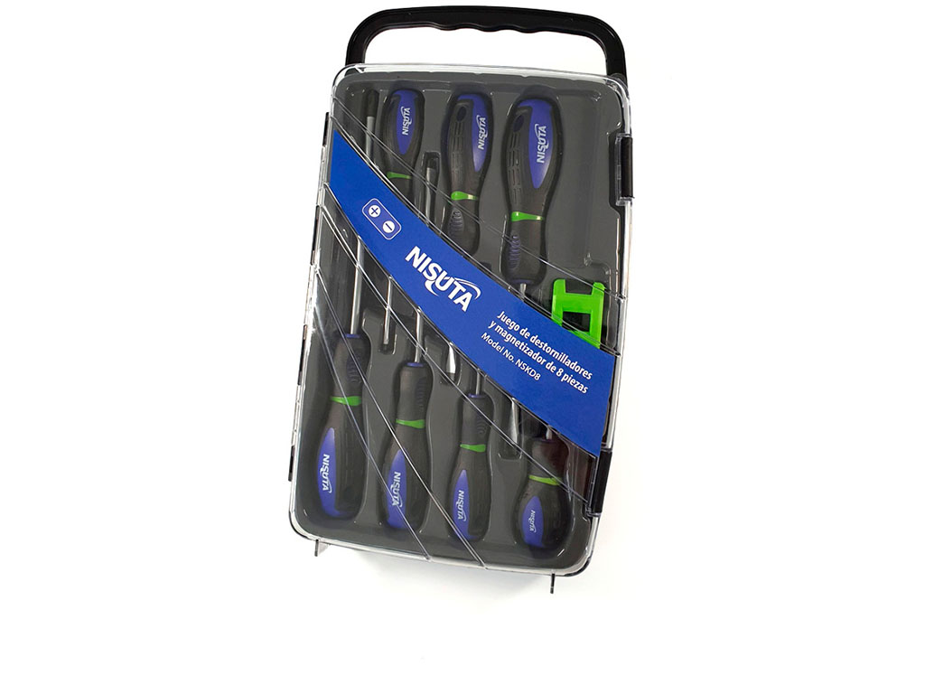 El kit de destornillador y magnetizador Nisuta NSKD8 es una opción práctica para tareas de ajuste, armado y mantenimiento general en el hogar, la oficina o el taller. Su formato de 8 piezas reúne destornilladores planos y Phillips de medidas habituales, junto con un magnetizador / desmagnetizador que amplía la versatilidad del set para distintos trabajos cotidianos.