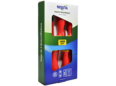 El kit de destornilladores Nisuta NSKVDE5 está pensado para trabajos eléctricos que requieren herramientas aisladas y un manejo cómodo en espacios reducidos. Su formato de 5 piezas incluye destornilladores planos y Phillips, ofreciendo una solución práctica para tareas de instalación, ajuste y mantenimiento donde la seguridad y la precisión son importantes.