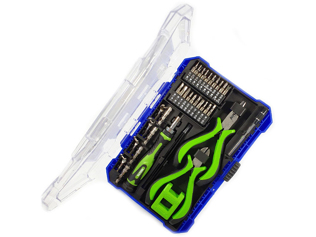 El kit de herramientas de precisión Nisuta NSKD54 es una opción completa y versátil para tareas de reparación, ajuste y mantenimiento en dispositivos electrónicos, equipos pequeños y trabajos que requieren mayor detalle. Su formato de 54 piezas combina destornillador de precisión con cricket, pinza, alicate, barra de extensión, puntas especializadas y accesorios adicionales, ofreciendo una solución práctica para trabajar con distintos tipos de tornillos y componentes delicados.