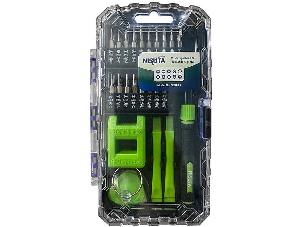 El kit de reparación de celular Nisuta NSKC43 es una opción completa y versátil para tareas de apertura, ajuste y mantenimiento en smartphones y otros dispositivos pequeños. Su formato de 43 piezas combina herramientas de precisión, accesorios de palanca y una amplia variedad de puntas, ofreciendo una solución práctica para trabajos que requieren cuidado, control y compatibilidad con distintos tipos de tornillos.