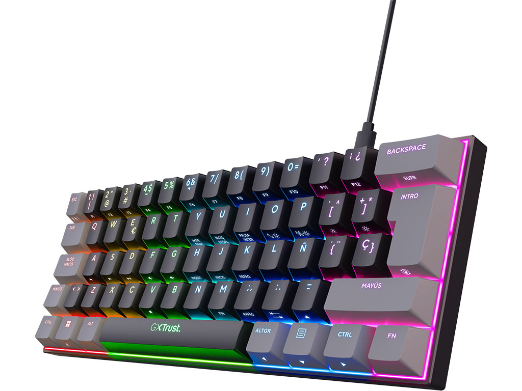 Teclado mecánico gaming mini 60% con iluminación RGB completa.