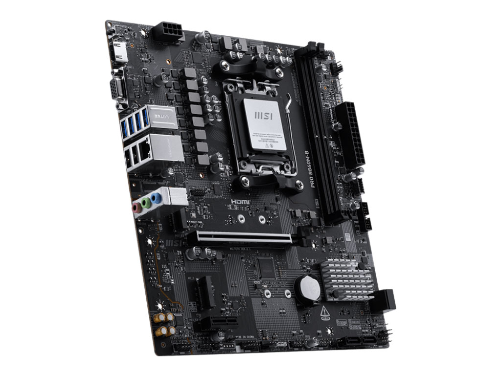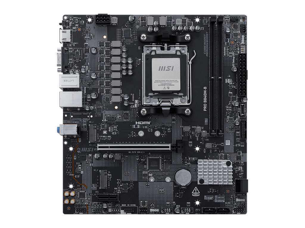 La PRO B840M-B está diseñada con muchas características exclusivas de MSI, PCIe 4.0 M.2, EZ PCIe Clip II, 2.5G LAN y Front Type-C, preparada para los procesadores AMD Ryzen™ serie 9000.