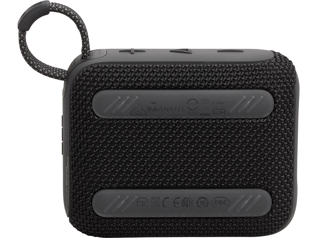 El altavoz JBL Go 4 incorpora plástico reciclado posconsumo y tejido reciclado para la rejilla del altavoz. El embalaje es de papel con certificación FSC y tinta de soja.
