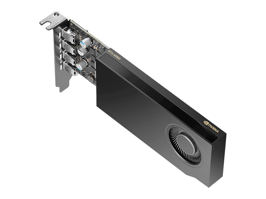Construida sobre la arquitectura de GPU NVIDIA Ampere, la GPU NVIDIA RTX® A1000 es una solución potente y de bajo perfil que brinda el rendimiento y las capacidades que exigen las aplicaciones profesionales más demandantes. Con 2.304 Núcleos CUDA®, 18 Núcleos RT, 72 Núcleos Tensor, 8 GB de memoria GDDR6 y la capacidad de manejar hasta cuatro pantallas 5K, la NVIDIA RTX A1000 está lista para llevar tu trabajo al siguiente nivel.