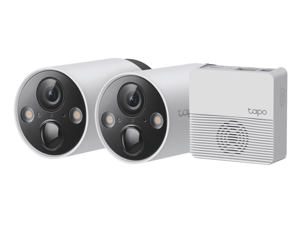 | Contenido del paquete | • Cámaras Tapo C420 (batería incluida) • Baterías Tapo A100 • Hub Tapo H200 • Adaptador USB • Cable adaptador USB • Adaptador de corriente CC • Anclajes de montaje • Tornillos de montaje • Plantillas de montaje • Soportes de cámara • Guía de inicio rápido • Cable Ethernet RJ45 |