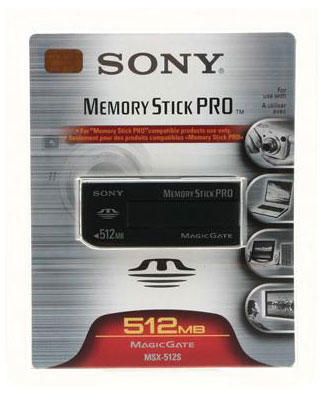 Tarjeta de Memoria Sony Memory Stick PRO 512 Mb ideal para Camaras Digitales, Reproductores de MP3 y PDAs. Almacena hasta 180 fotos en resolución fina y mas de 300 fotos en resolución estandar. Es pequeña y liviana. Compatible con todos los sistemas operativos.